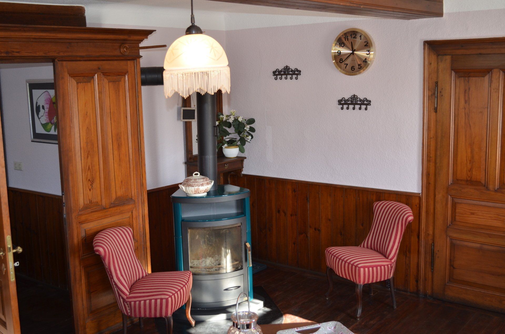 Und was ist mit dem Bad? Der vermögende Apotheker Adolf Rattinger ließ das Haus 1905 in der heute noch existierenden Form mit einem im Grossbürgertum üblichen Wohnkonzept ausgestalten. Damals war es verpönt und unschicklich, Räume, in denen es unangenehm roch und dampfte, in Wohnräume zu integrieren, so wie wir es heute gewohnt sind. Zudem wusste man damals schon um das Thema Hygiene und richtete sich baulich danach ein. Das komfortable Duschbad mit WC und Waschbecken sowie einer Waschmaschine ist deshalb separat von der Suite angeordnet.